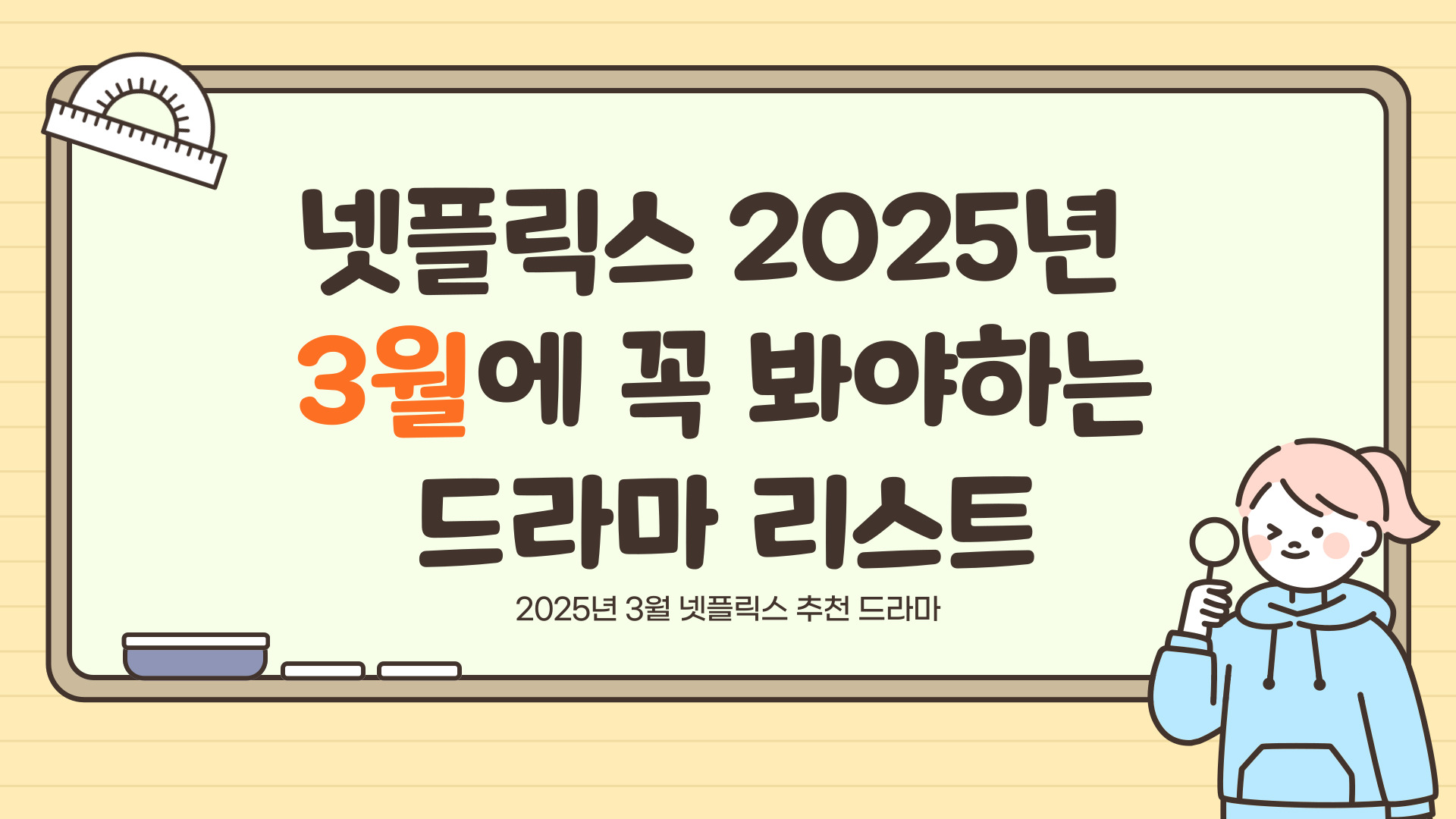 안녕하세요! 😊 오늘은 넷플릭스에서 2025년 3월에 개봉하는 드라마 중에서 꼭 봐야 할 작품들을 소개해 드릴게요. 요즘 넷플릭스에서 다양한 장르의 드라마가 쏟아지고 있는데, 어떤 드라마가 기대되는지 함께 살펴보아요!